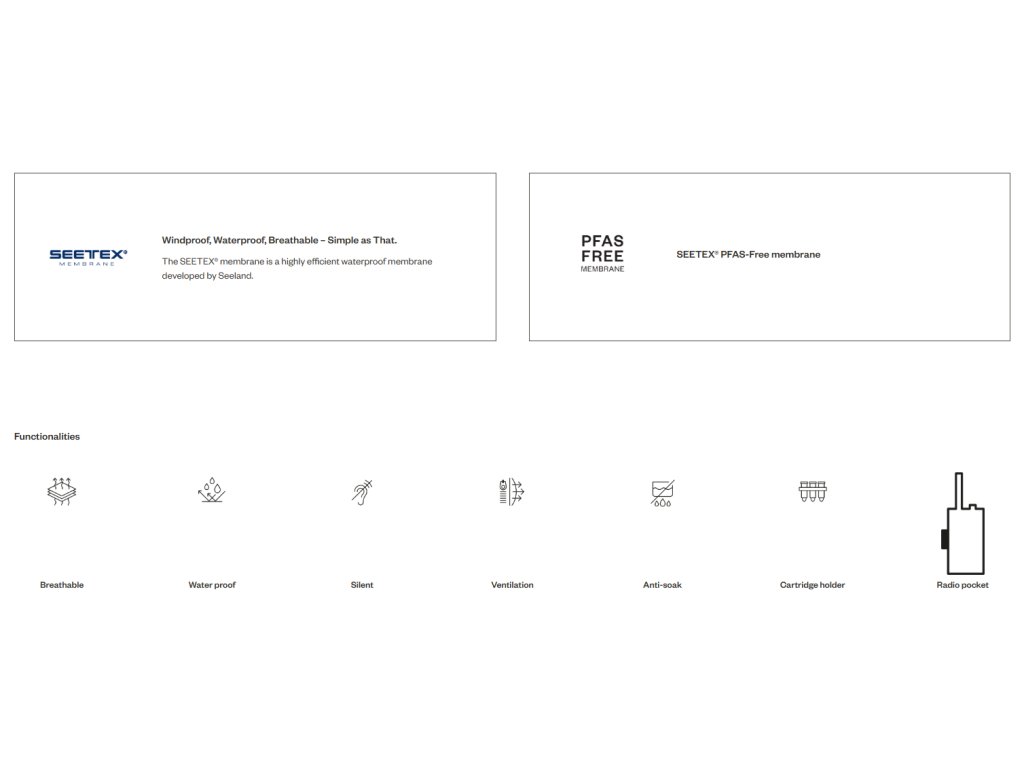 Bunda Seeland Chaser Jacket byla navržena pro všestranný lov a outdorové aktivity – a přináší perfektní balanc mezi praktičností a komfortem. Díky membráně SEETEX® bez obsahu PFAS a podlepeným švům poskytuje spolehlivou ochranu proti větru a dešti. Vnější vodě-odpudivé zipy, větrací otvory v podpaží a síťovaná podšívka v horní části zaručují optimální prodyšnost i při intenzivním pohybu.