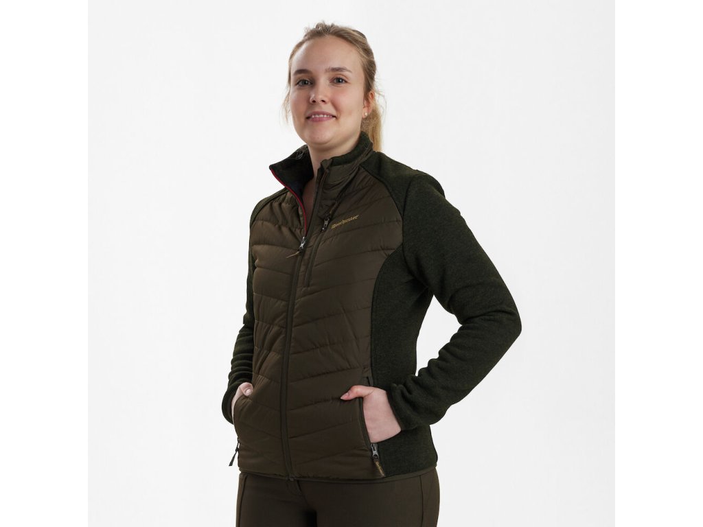 Dámská polstrovaná mikina Deerhunter Caroline Padded je kombinací pohodlí, funkčnosti a loveckého stylu. Je navržena tak, aby poskytovala ochranu proti chladu i větru, a zároveň umožnila volnost pohybu díky pružným úpletovým panelům na ramenou, bocích a rukávech.