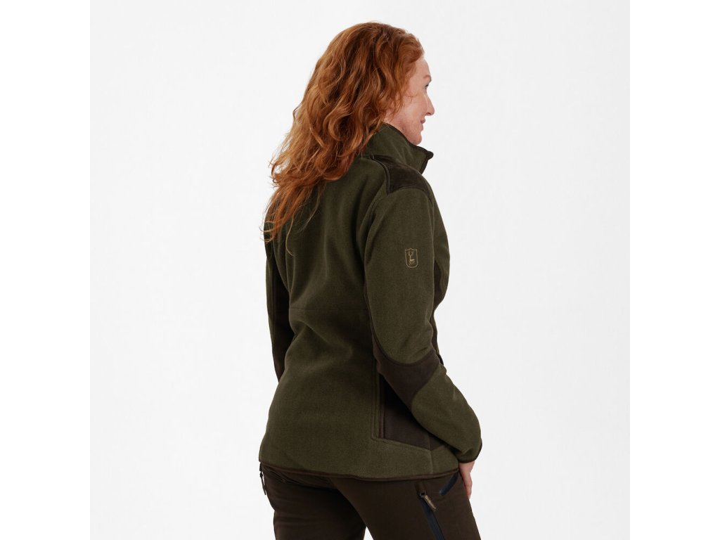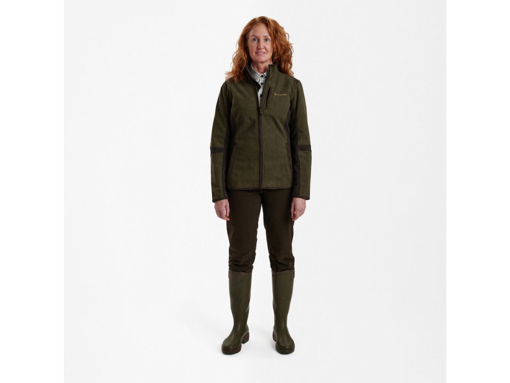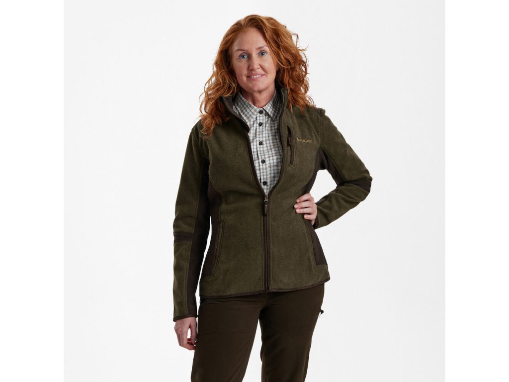 Bunda je vyrobena z měkkého, třívrstvého bonded fleece materiálu, který výborně izoluje teplo, chrání proti větru a zároveň zajišťuje prodyšnost. Díky vodoodpudivé úpravě vás nezaskočí ani lehký déšť nebo ranní rosa. Praktické kapsy na zip poskytnou dostatek prostoru pro drobnosti či lovecké příslušenství, zatímco ladný dámský střih zaručuje pohodlné nošení i atraktivní vzhled.