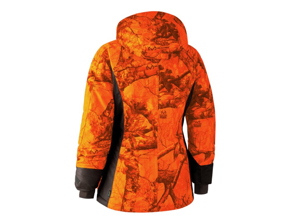Dámská myslivecká bunda ideální pro bezpečný lov v zimním období. Bunda je vodě odpudivá, voděodolná a prodyšná díky membráně a odolná do náročného terénu. Kapuci lze odepnout. Má manžety proti větru a nastavitelné manžety na rukávech. Také nastavitelný spodní díl a pas, který umožní dosáhnout dokonalého střihu. Díky extra izolaci poskytuje tato bunda výjimečné pohodlí a teplo i v nejchladnějších klimatických podmínkách. Bunda má kapsu na vysílačku s elastickým popruhem na anténu, dále dvě kapsy na zahřívání rukou a extra kapsu na zip v levé přední kapse, obě se skrytými zipy, a také dvě přední kapsy s klopami, dvě vnitřní kapsy a náprsní kapsu s vodotěsným zipem. Hlavní centrální zip je oboustranný, zipy jsou kvalitní značky YKK.