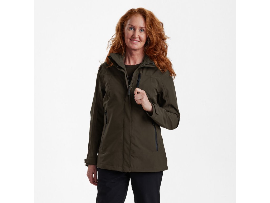 Nepromokavá, prodyšná a větruodolná, vysoce funkční dámská bunda DEERHUNTER Lady Sarek Shell je navržena pro maximální pohodlí v přírodě za každého počasí. Materiál obsahuje elastan, je proto pružný do všech 4 stran, nabízí maximální volnost pohybu. S membránou Deer-Tex® Performance Shell nabízí nepromokavou ochranu před deštěm a navíc je ošetřena vodoodpudivou úpravou bez fluorokarbonů. Bunda má moc hezký ženské postavě lichotivý střih. Má kapuci s kšiltem, 2 přední kapsy, 1 náprsní a 1 vnitřní kapsu.
