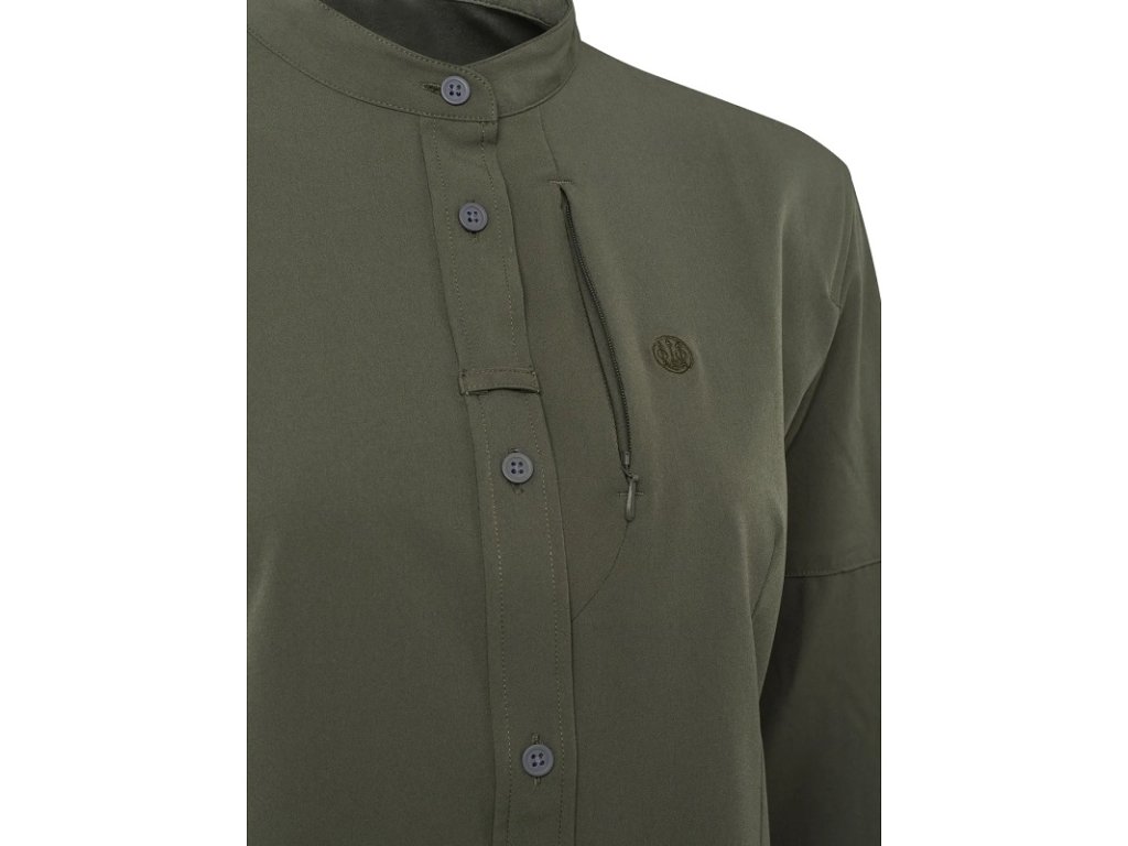 Lehká, prodyšná košile Berreta EVAD Flex Green Stone je z pružného, pohodlného materiálu s elastanem, s antibakteriální a UV ochranou UPF+50 - Ultraviolet Protection Factor je stupeň ochrany, který udává množství záření, které oděv blokuje. Maximální stupeň ochrany je právě UPF 50+, což znamená, že blokuje více než 98 % UVA a UVB paprsků!