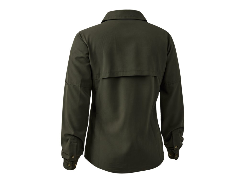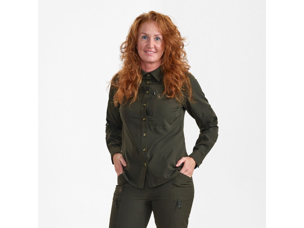 Dámská myslivecká košile Canopy dánského výrobce Deerhunter z lehkého, prodyšného, rychle schnoucího materiálu. Košile je nesmírně pohodlná, pružná a ideální pro letní dny. Dlouhý rukáv lze srolovat a zapnout na krátký. Na zádech má košile odvětrávání pro pohodlí i v těch nejteplejších letních dnech. Ve spodní části zapínání košile je našitá praktická vychytávka - látka pro čištění optiky. Košile má kapsu na zip.