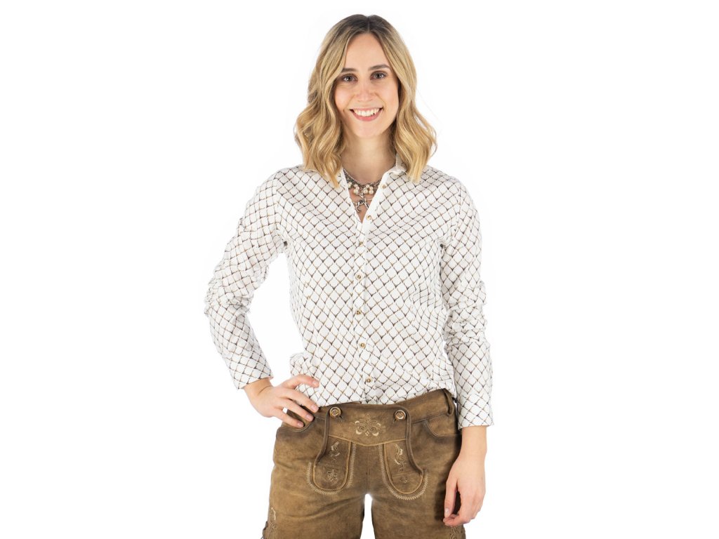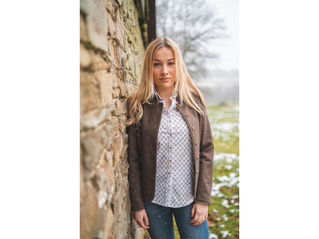 Krásná dámská myslivecká košile Orbis s dlouhým rukávem se stylovým potiskem jeleních hlav hnědé barvy. Knoflíčky jsou z imitace paroží. Materiál 100 % bavlna. Velmi slušivá, doporučuji.