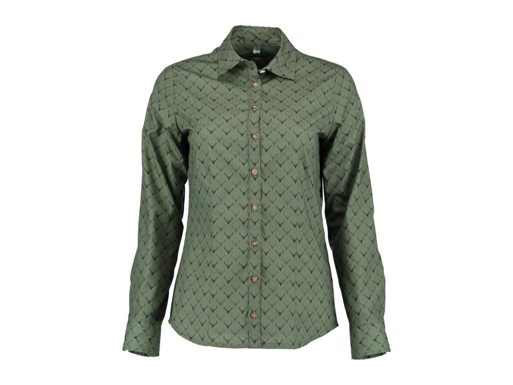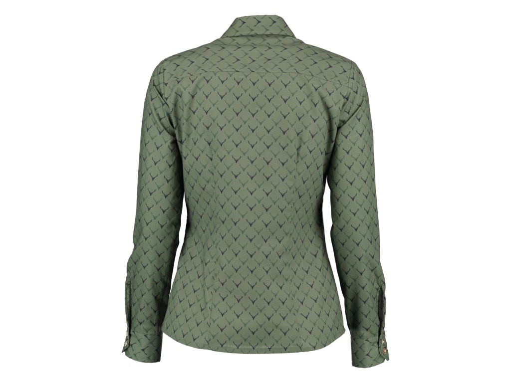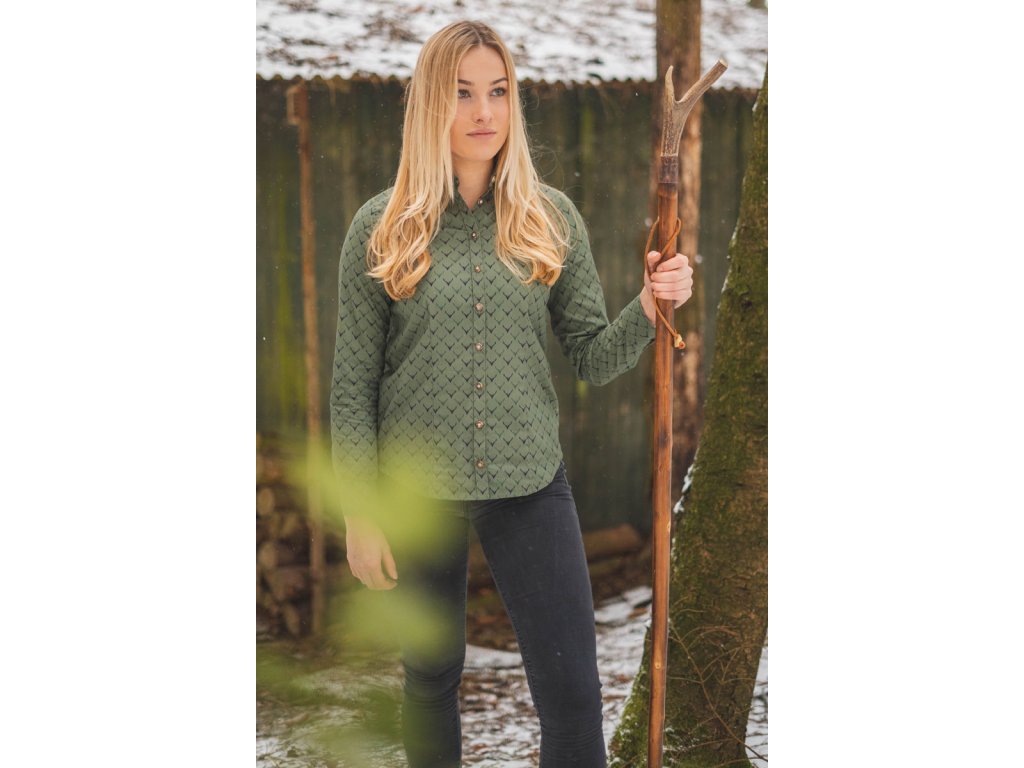 Krásná dámská košile s jemným vzorem tisku hlav jelena a stylovými knoflíčky z imitace paroží.