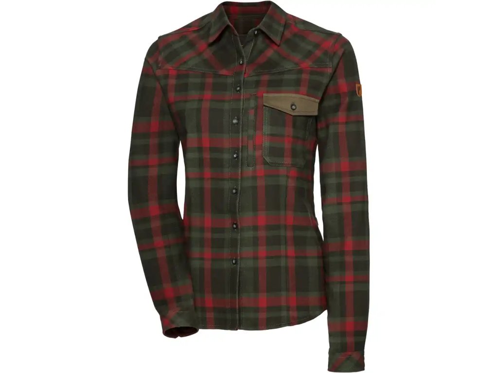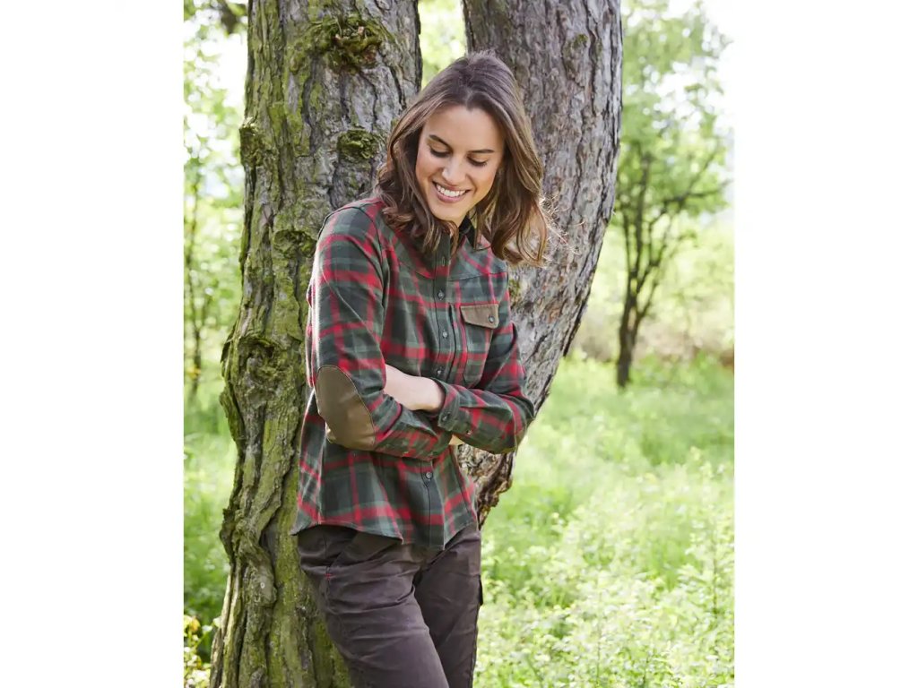 Pěkná teplejší bavlněná košile, která kombinuje stylovost s moderním nádechem. Košile má jednu kapsu s klopou a pod ní kapsu na zip. Na loktech jsou nášivky, které jsou nejen praktické, protože zvyšují životnost košile, ale také dodávají košili zajímavý detail. Košile má ženský jemně přizpůsobivý střih se zaobleným spodním lemem.