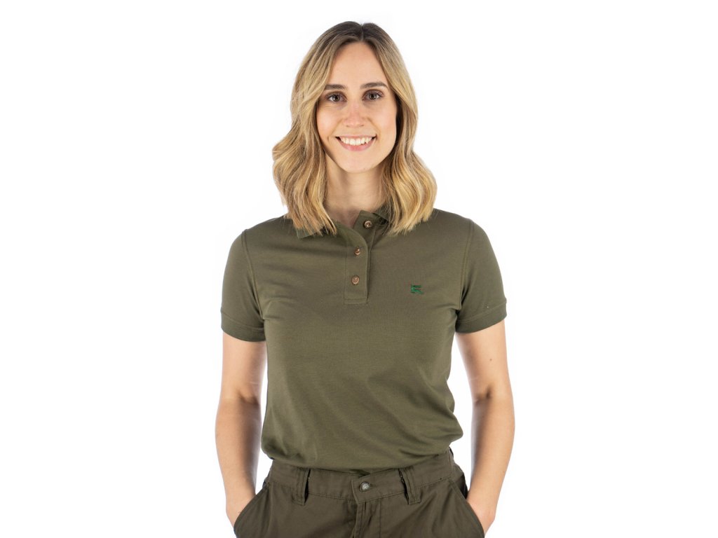 Kvalitně ušitá dámská myslivecká polokošile Orbis s krátkým rukávem slušivého dámského střihu, z velmi pohodlného materiálu díky přidaného elastanu. Polokošile je pěkné myslivecky zelené barvy, má decentní a elegantní výšivku jelena na prsou a knoflíčky z imitace paroží.