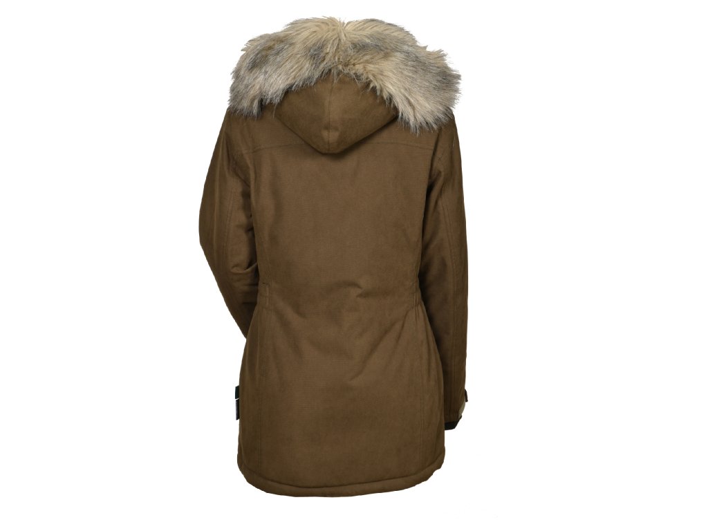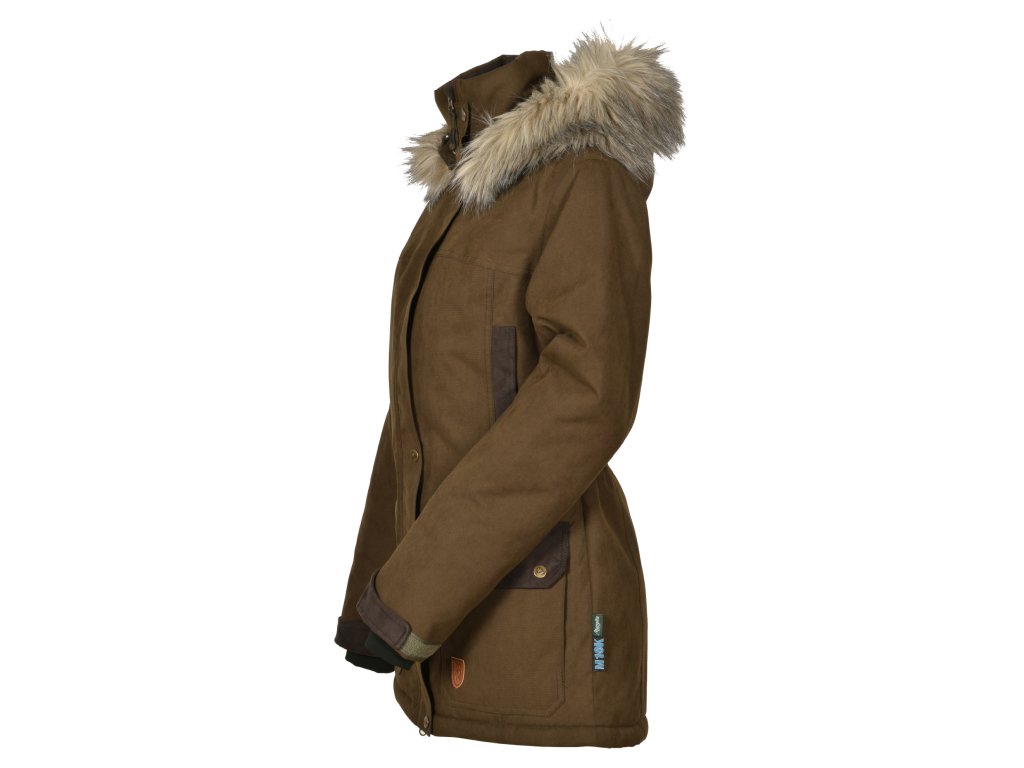 Dámska zimná bunda MAGURA ušitá ve sportovně-elegantním stylu, je vyrobena z pevného a odolného materiálu. Vhodná do chladného zimního obdobní na hony, nebo jen volnočasové procházky v přírodě, i ve městě. Bunda zahřeje a udrží v suchu i v extrémně chladných a mokrých podmínkách. Doplněna je jemnou kožešinou na onímatelné kapuci. Větru a vodě odolná díky membráně M10K - prodyšnost -10 000 g / m2 /24h a vodní sloupec - 10 000 mm. Zateplená je izolací Climashield ® Apex 100 a prošívaná podšívkou v kobinaci s fleecem. Bunda má dvě vrchní, dvě spodní dvojité kapsy a jednu vnitřní náprsní kapsu na zips. Rukávy mají manžetu na suchý zip pro regulaci šířky.