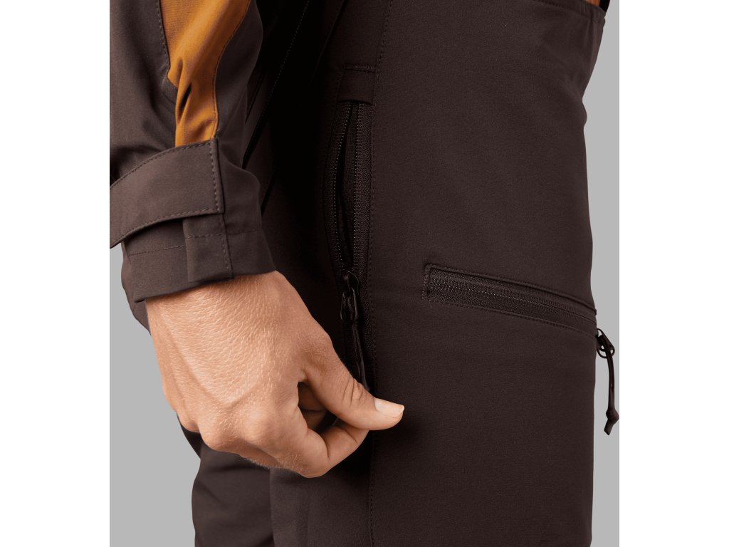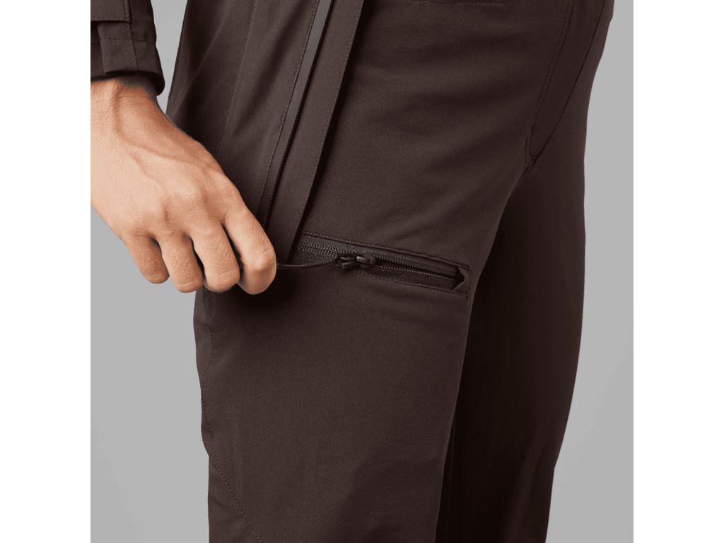 Praktické detaily zahrnují dvě otevřené přední kapsy a menší kapsu na zip na stehně, ideální pro uložení drobných nezbytností během lovu či venkovních prací.