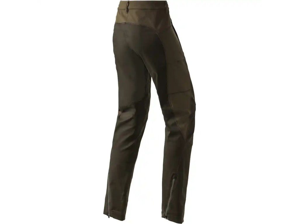 Velmi pohodlné dámské myslivecké kalhoty, které střihově připomínají legíny. Jsou kombinované ze dvou materiálů - elastického v pase, na hýždích a bocích stehen a jemně pružného bavlněného materiálu, který dělá kalhoty odolnějšími, než klasické legíny. Díky předtvarovaným kolenům umožňují maximální pohodlí v pohybu. Na konci nohavic jsou praktické dlouhé zipy. Kalhoty mají dvě přední kapsy na zip, dvě na stehnech. Všechny kapsy jsou střihově řešeny tak, že nekazí celkový elegantní dojem kalhot, aniž by ztratily praktičnost. Kalhoty jsou ošetřeny vodu odpudivou úpravou.