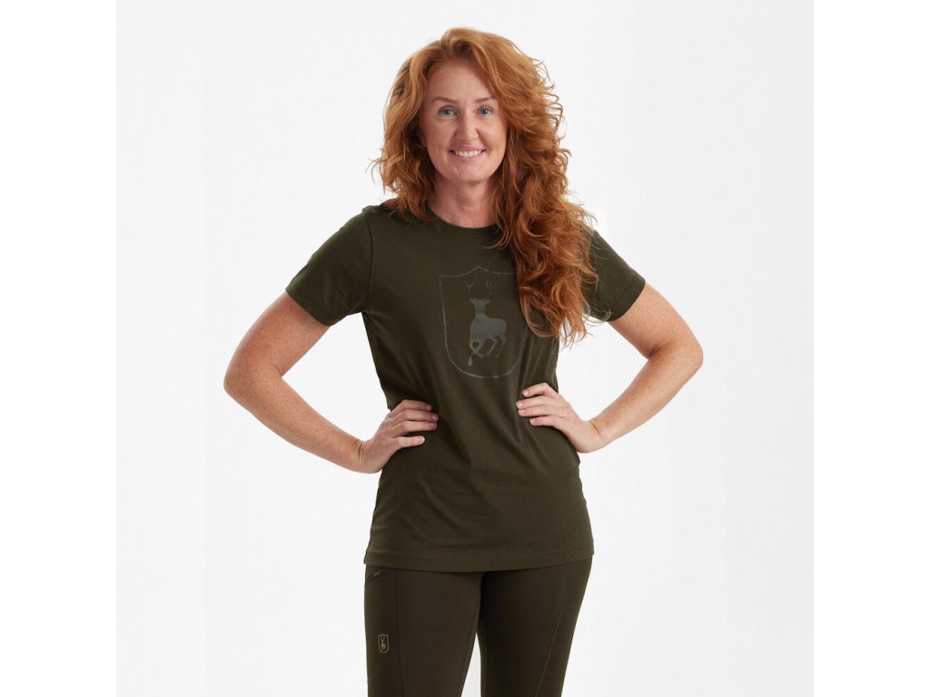 Dámské myslivecké tričko s krátkým rukávem z pohodlného materiálu. Na hrudníku má potisk loga značky Deerhunter ve tvaru jelena.