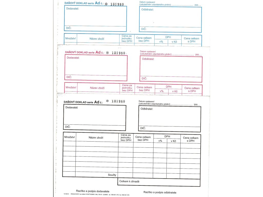 Daňový doklad propisovací číslovaný ve formátu A5 nabízí naše firma SPECIÁL FM Pavla Vrublová.