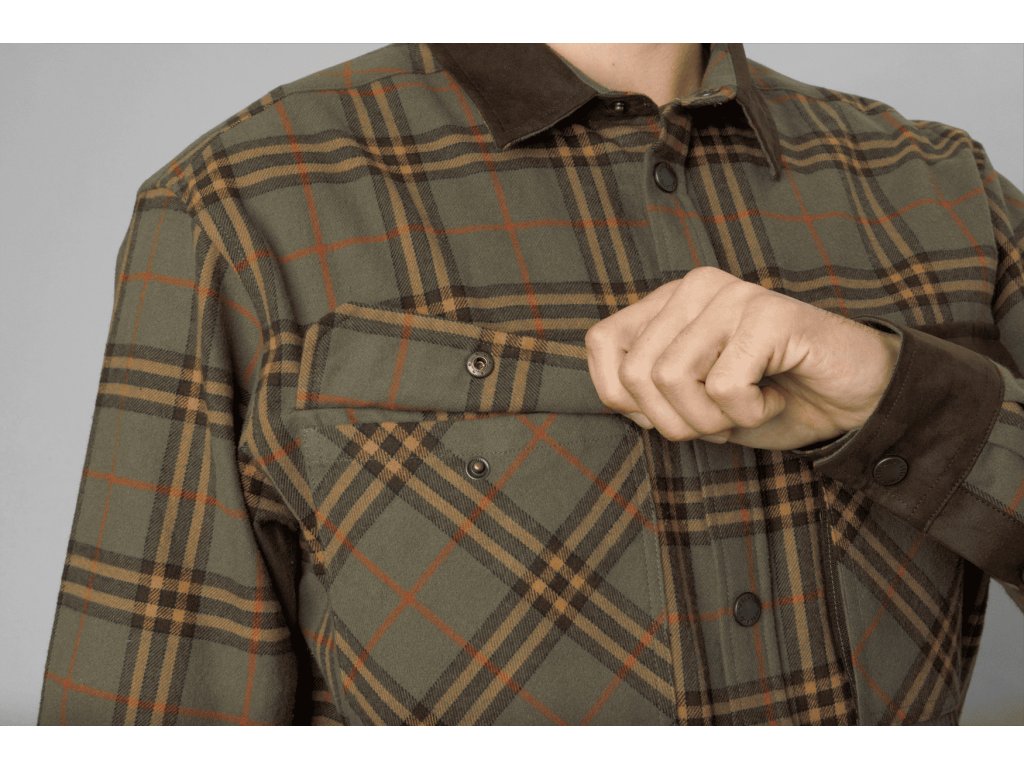 Klasický flanelový vzor dodává nadčasový vzhled vhodný pro myslivost i outdoor styl.
