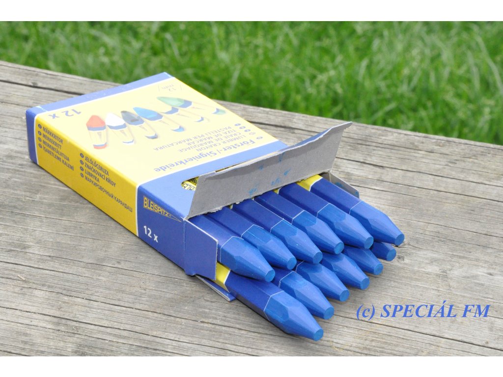 Křídy lesnické modré barvy. Německé křídy Bleispitz jsou oblíbené zejména pro svou trvanlivost a nelámavost při použití, jsou odolné vůči vlhokosti. Vhodná k popisu dřeva, kamene, kartonu, železa, betonu... V balení je 12 kusů o průměru 12 mm a délce 120mm. K těmto křídám doporučujeme speciální držák na křídy. K dostání také v barvě fluorescenční oranžové nebo červené.