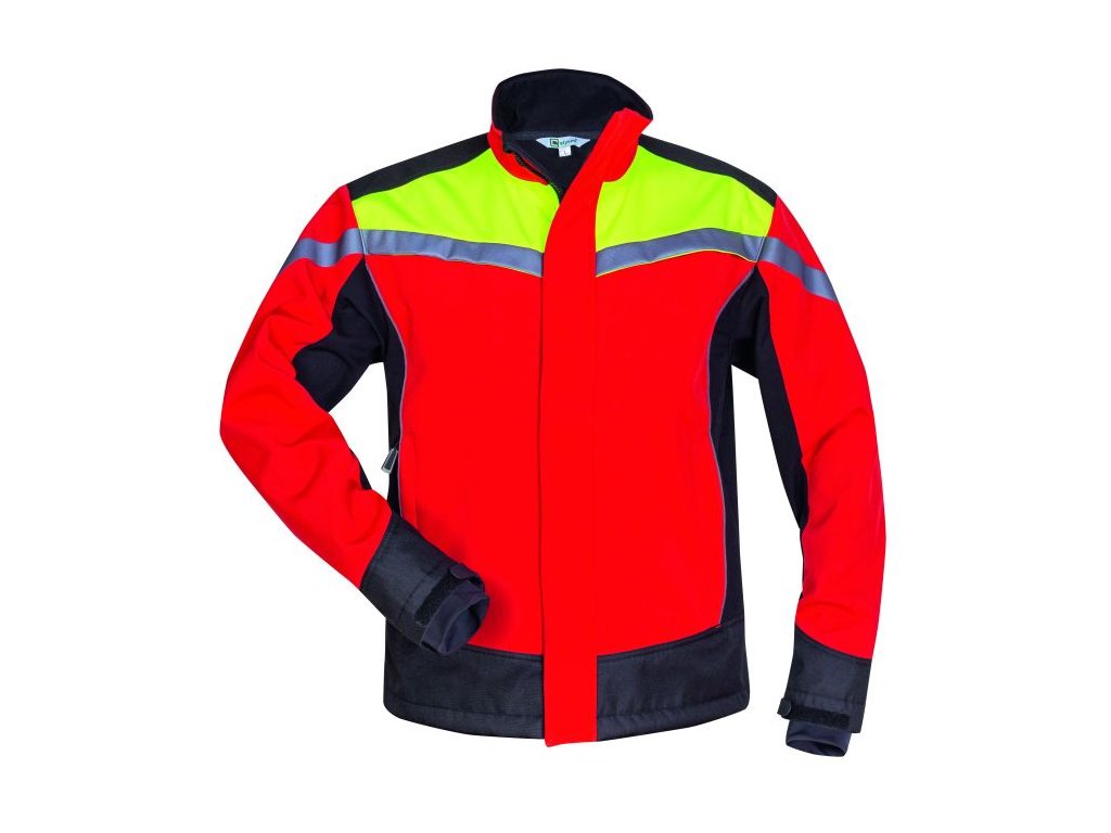 Softshellová bunda moderního a ergonomického střihu, prodyšná, větru a voděodolná, vysoce viditelná s reflexními páskami, vyztužení Cordurou, dolní lem a konce rukávů z Oxford tkaniny,