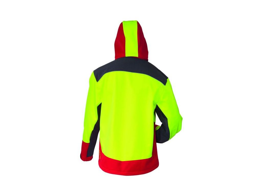 Softshellová bunda, prodyšná, větru a voděodolná, vysoce viditelná z fluorescentní tkaniny s 3M reflexními páskami, YKK zipy, odnímatelná kapuce,