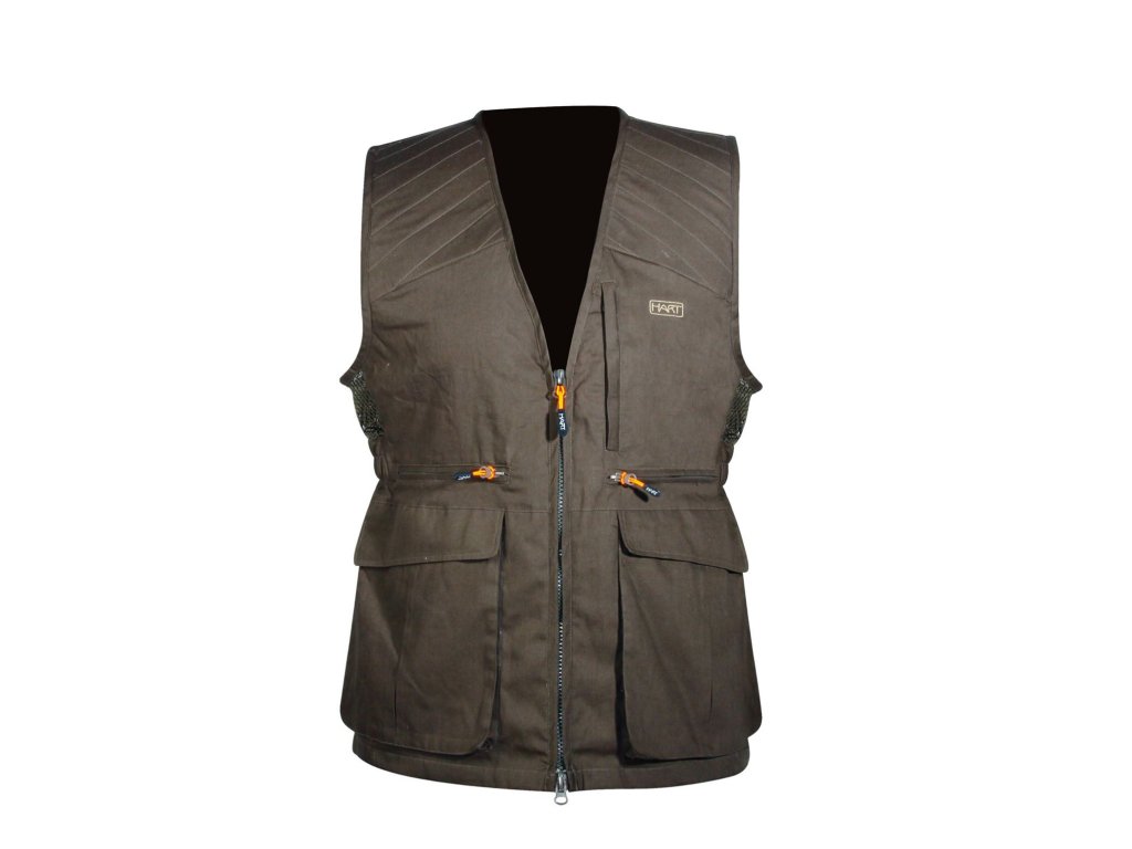 Velmi praktická, vzhledově velmi pěkná vesta sportovního střihu, která má 2 kapsy s klopami a 3 kapsy na zips v přední části, 1 vnitřní kapsa na zips a 1 velká velmi praktická kapsa na zadním díle vesty. Ocení ji nejen myslivci, ale i kynologové, do kapsy je možné schovat láhev s vodou pro psa, miska, aporty, lesáci do ní mohou vložit frakty, křídy, spreje... Zadní část vesty je z části z prodyšného síťového materiálu. Ideální vesta nejen v teplých letních dnech.