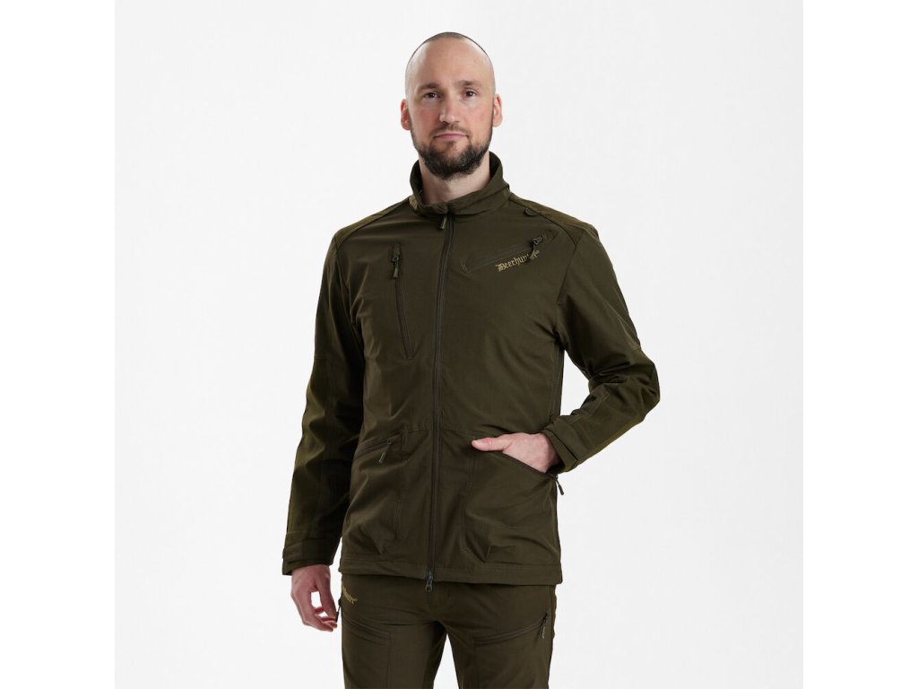 Kvalitní a velmi pohodlná pánská letní myslivecká bunda Deerhunter Excape Light Jacket je z velmi pružného a prodyšného materiálu kombinovaného s odolným Deer-X-Dura materiálem na ramenou, na loktech a rukávech. Bunda je ošetřena vodu a nečistoty odpudivou úpravou. Má prakticky řešené kapsy, také kapsu na vysílačku s možností upnutí antény. Zip je dvoucestný, kvalitní YKK. Bunda má předtvarované lotky pro větší pohodlnost v pohybu, rukávy lze zúžit díky zapínání na suchý zip a spodek bundy lze stáhnout pomocí gumy. Je velmi pěkně propracovaná, vypadá opravdu moc hezky a je ideální volbou pro letní měsíce.