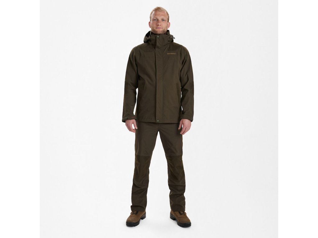 Lehká letní bunda do deštivého počasí s Deer-Tex® Performance Shell membránu. Všechny švy jsou podlepené pro větší vodě odolnost. Bunda má odepínatelnou kapuci s kšiltem. Ramena, lokty a lemy kapes jsou z rip-stop materiálu odolného proti oděru. Bunda má 2 hluboké vnější zipové kapsy, 2 hluboké vnitřní zipové kapy a další 4 vnitřní kapsy. Spodní lem lze nastavit pomocí stahovatelné gumy. Rukávy lze upravit pomocí suchého zipu.