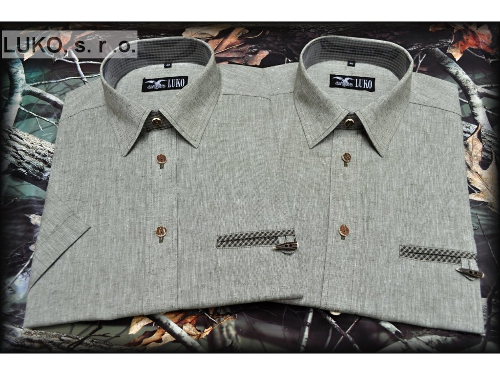 Elegantní košile s krátkým rukávem ze směsového materiálu 80% bavlna / 20% len s úpravou easy care a s kombinací z jemně károvaného materiálu na vnitřním pásku límce, na výpustkové kapse, se zapnutím na knoflík a na vnějším pásku límce. Knoflíky jsou z pravé kosti.