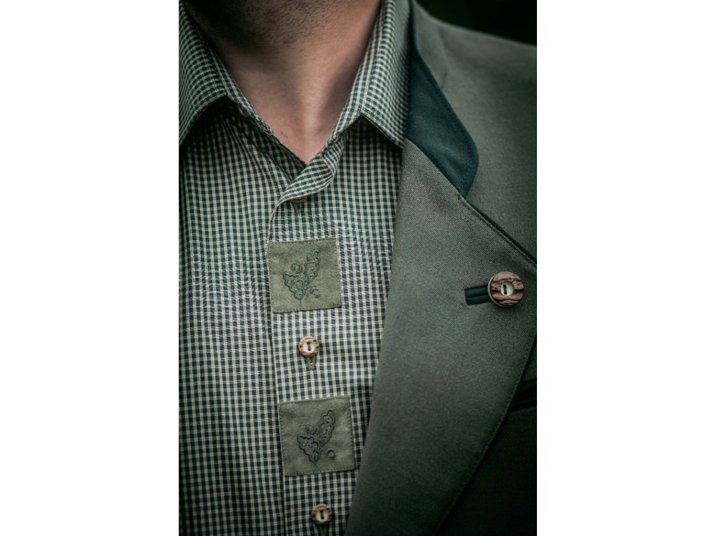 Materiál na výrobu košil je dodáván firmou vlastnící certifikát kvality ÖkoTex. košile má rovný střih, jednu kapsu a knoflíky z imitace paroží. Samozřejmostí je i náhradní knoflík.