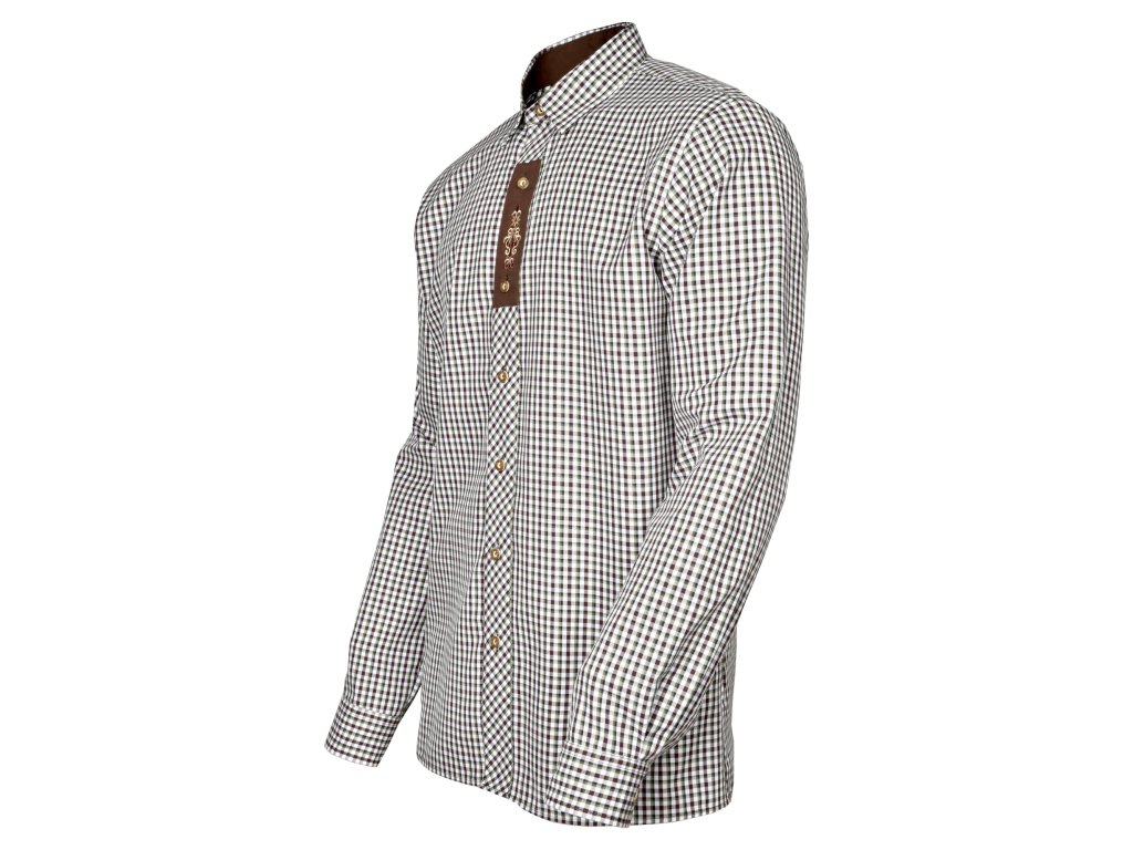Nádherná myslivecká košile s dlouhým rukávem slovenského výrobce. Je decentního károvaného vzoru kombinace barev zelené a hnědé, proto se dobře kombinuje s různými oděvy. Má nádhernou elegantní výšivku. Je klasického střihu, který zajišťuje pohodlnost a volnost. Knoflíčky jsou v imitaci paroží.