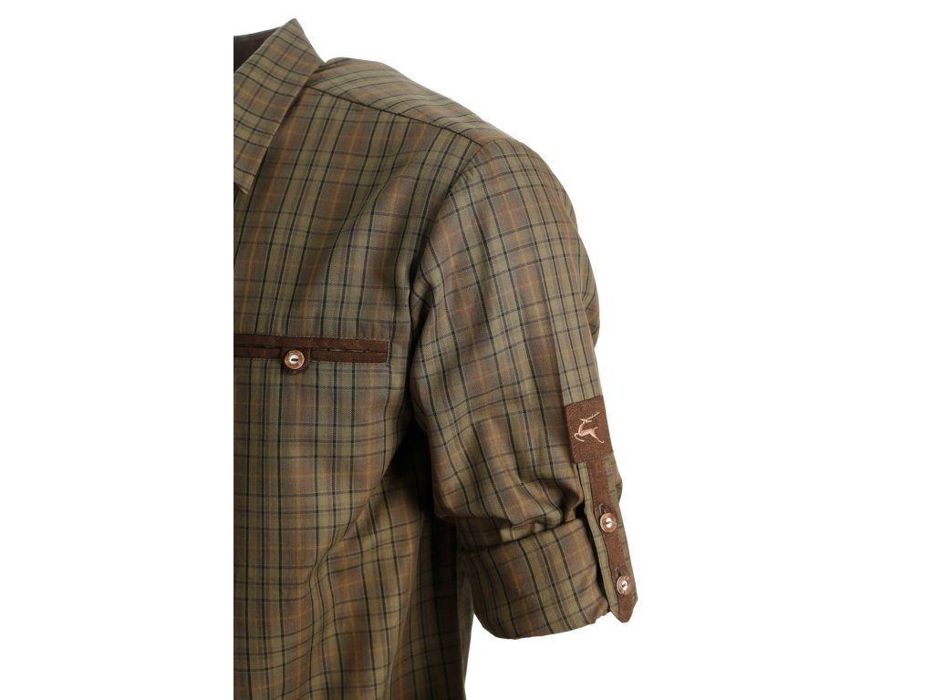 Elegantní vyšívaná košile z příjemného materiálu ze 100% bavlny, vhodná pro každodenní nošení, má možnost zapnout dlouhý rukáv na knoflíček a udělat z něj krátký. Má jednu kapsičku na hrudi. Barva košile je olivová s hnědými doplňky.