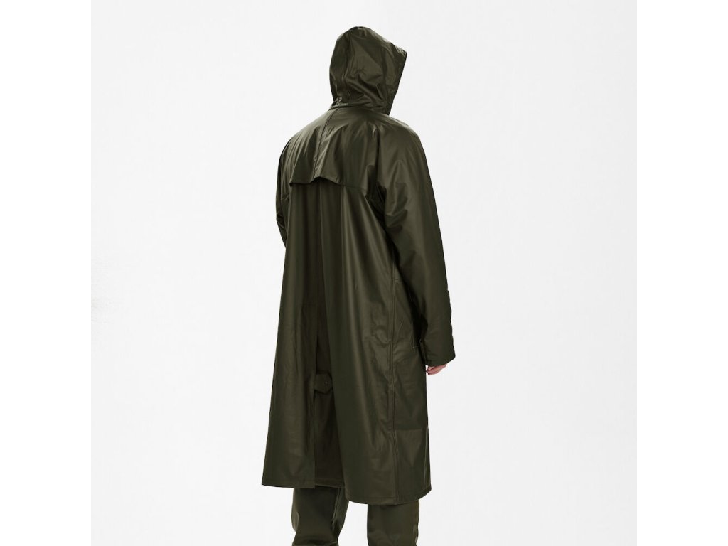 Kvalitní dlouhá myslivecká pláštěnka do deštivého počasí. Má dvě prakticky řešené kapsy, do kterých nezatéká voda. Větrání v podpaží a na zádech. Kapuci a konce rukávů lze stáhnout. Je z pružného nepromokavého materiálu (5000 mm). Pláštěnku lze prát v pračcce.