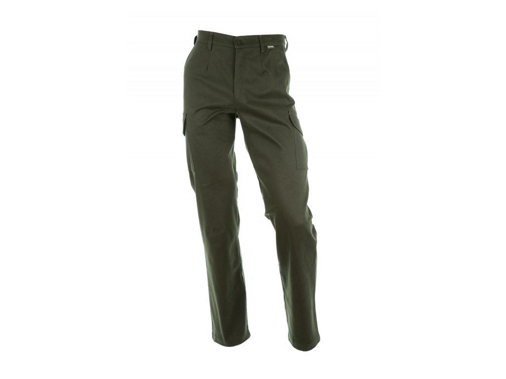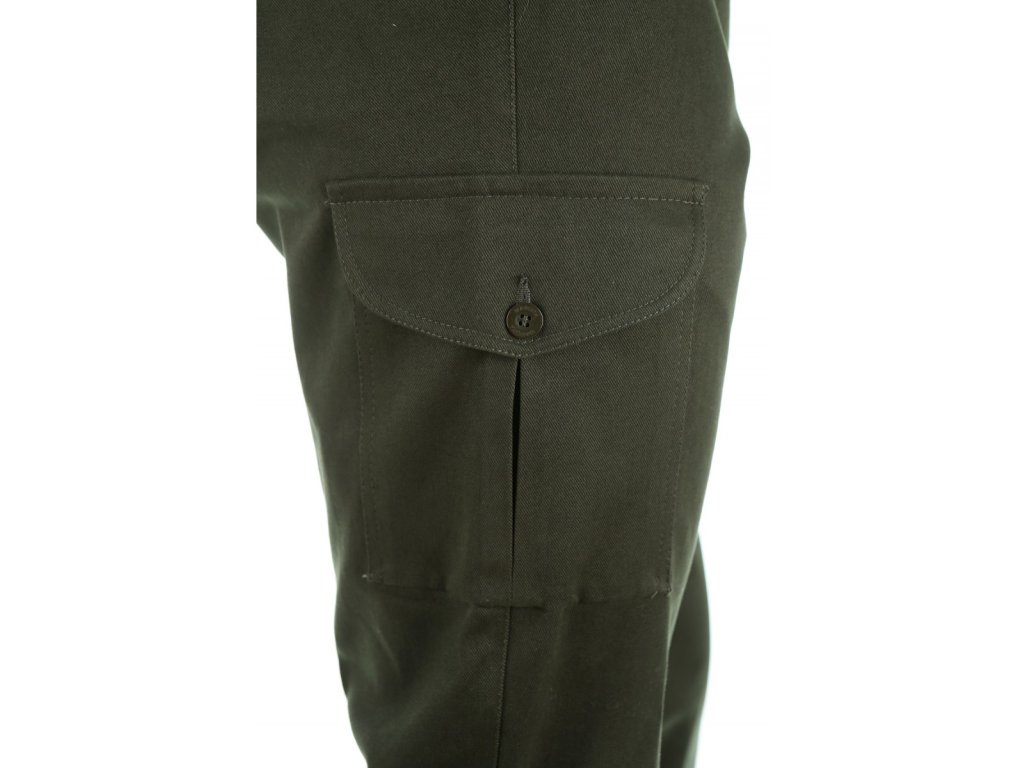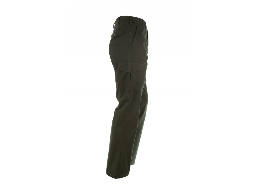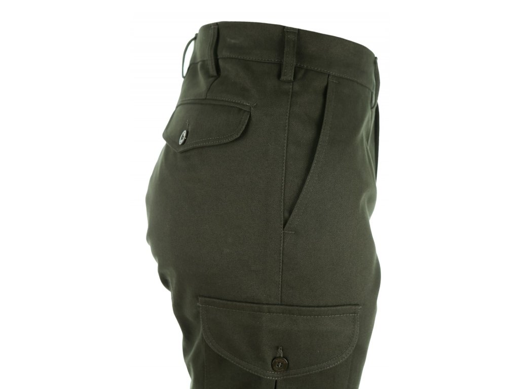 Kalhoty zelené barvy z odolného a zároveň díky elastanu i pohodlného pružnějšího materiálu (98% bavlna, 2% elastén) a rovného střihu. Mají 2 boční kapsy s ozdobně prošívanou lištou, 2 kapsy s příklopkami a 1 kapsu na zip s příklopkou na zadním díle. Kalhoty jsou velice pečlivě šité. Doporučujeme k těmto kalhotům také luxusní střeleckou vestu Miloš, jsou ze stejného materiálu a skvěle se k sobě hodí a ladí.