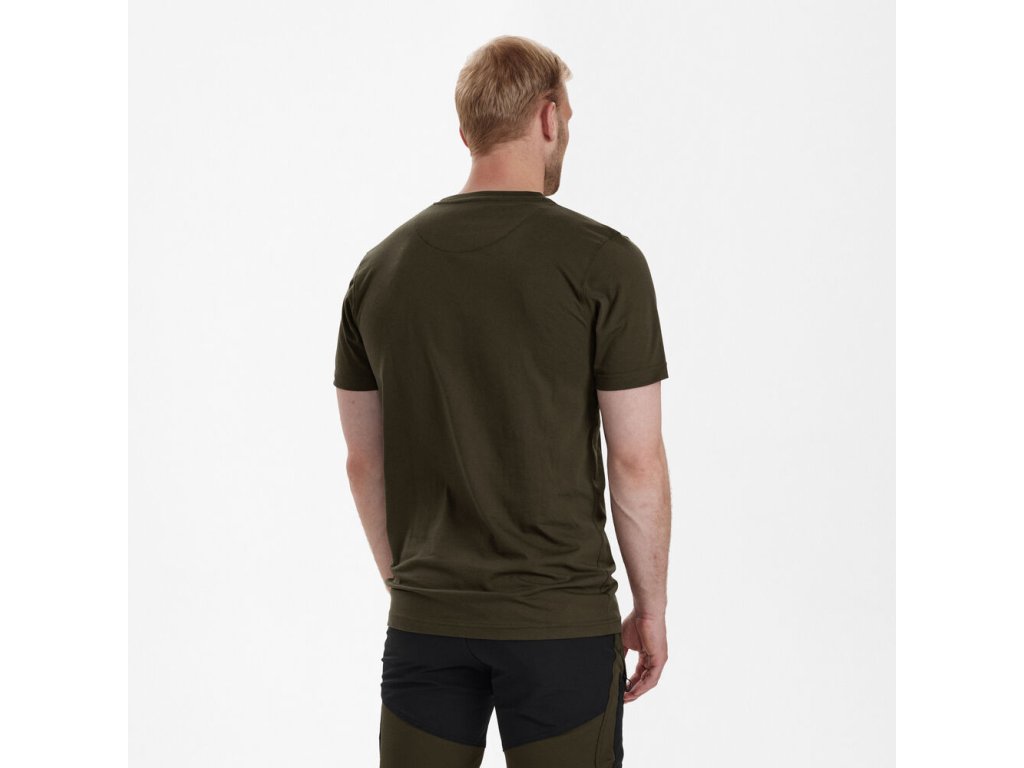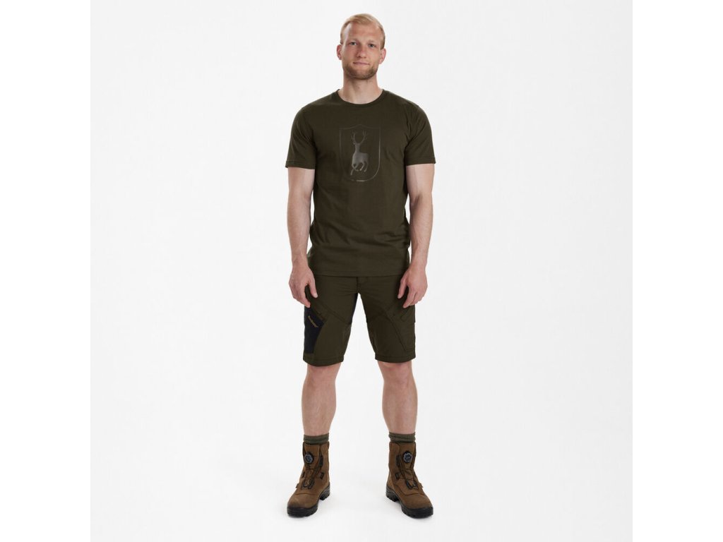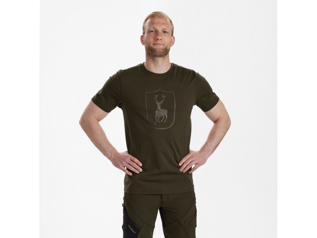 Triko s krátkým rukávem z příjemného měkkého materiálu s kulatým výstřihem a potiskem siluety jelena na hrudi.