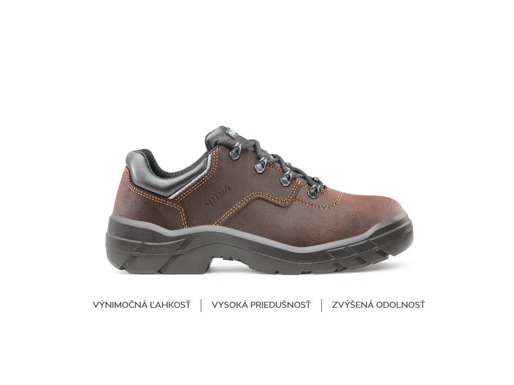 Na Slovensku vyráběné kvalitní pracovní polobotky z hydrofóbní hovězinové usně velur o síle 2,0 - 2,2 mm pro zvýšenou odolnost a prodyšnost. Podšívka CLIMAX s 3D konstrukcí pro neomezenou cirkulaci vzduchu a optimalizované klima. Stélka EFFECTOR z paměťové polyuretanové pěny pro extra vzduchové odpružení a prodyšnost. Podešev GRIPPER PU.2D s robustním designem pro zvýšenou odolnost a stabilitu.
