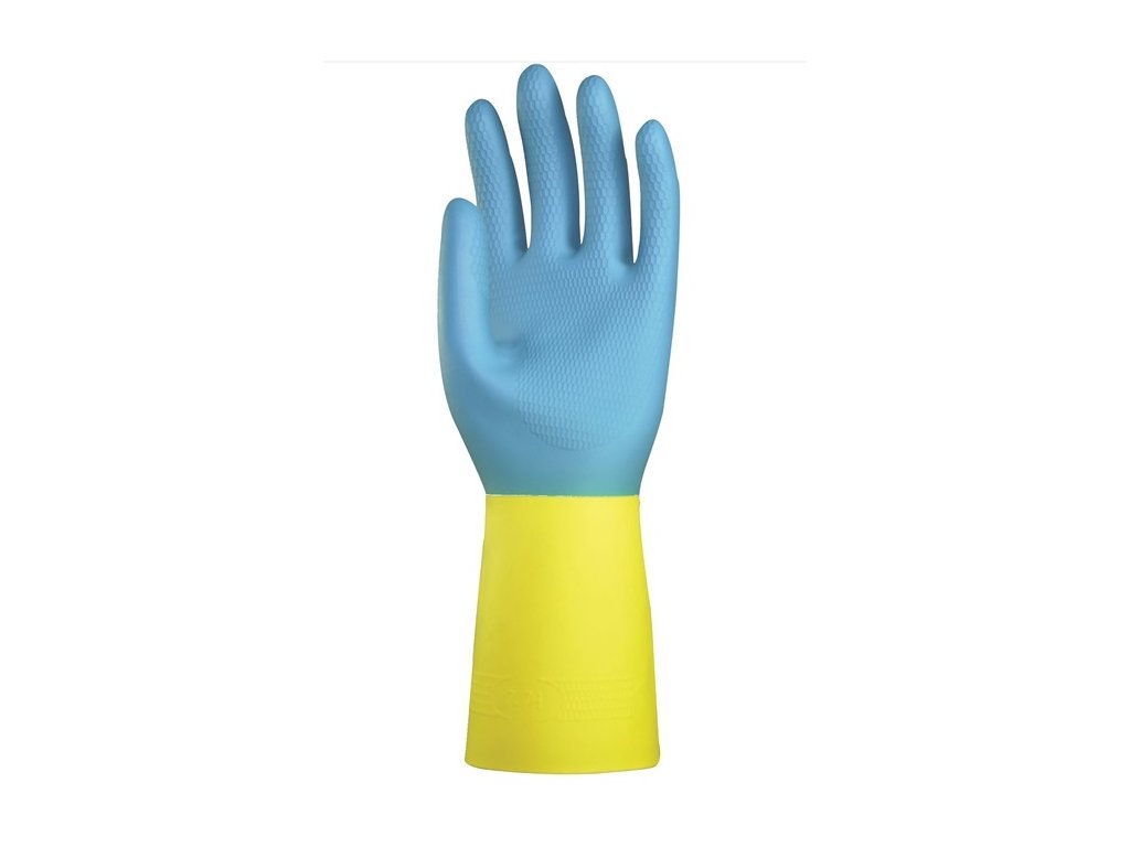 Dlouhé latexové chemicky velmi odolné rukavice s vnější vrstvou neoprénu. Uvnitř velurová úprava ze 100% bavlny. Ideální pro práci s chemickými prostředky, při nátěru přípravků na ochranu rostlin proti okusu zvěří a podobně.