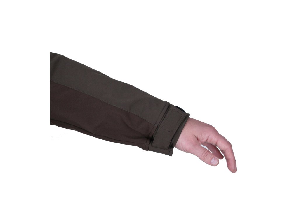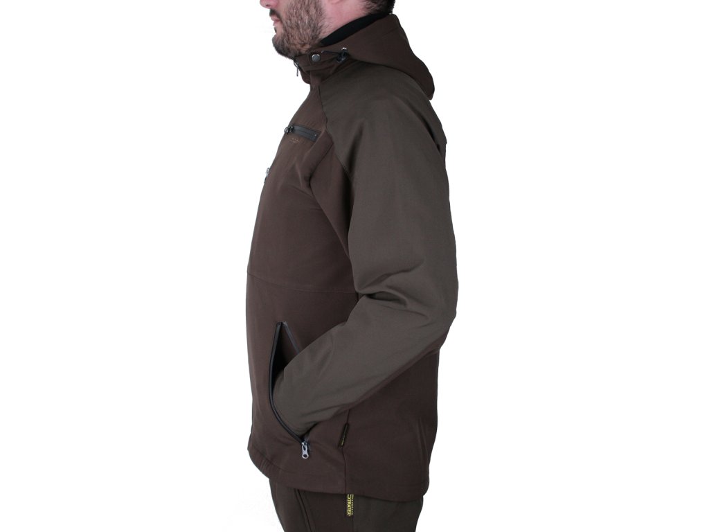 Softshell s laminovanou micromembránou odolný proti vodě a větru (vodní sloupec 10.000) poskytuje zároveň vyjímečnou pevnost, trvanlivost a prodyšnost materiálu. Celorozepínací bunda se stojáčkem, stahováním spodního okraje, stahováním rukávů na suchý zip, fleecovou podšívkou, dvěmi bočními kapsami, jednou prsní a odepínací kapucí se stahováním.