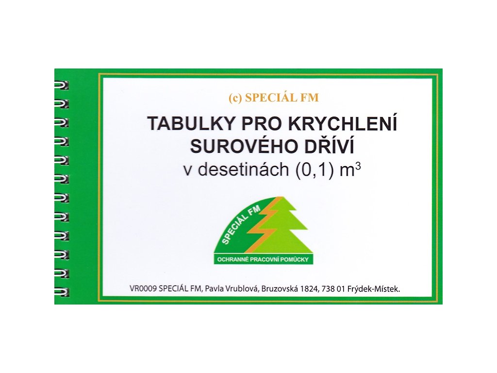 Tabulky pro krychlení surového dříví v desetinách (0,1) m³ obsahují