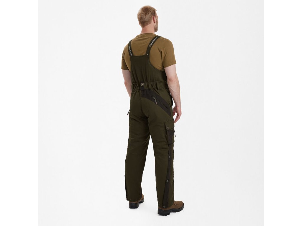 Posedové zimní kalhoty Muflon Bib dánského výrobce Deerhunter obsahují kvalitní izolaci 3M™ Thinsulate™, která je měkká, prodyšná a schopná udržet teplo i ve vlhkých podmínkách. Kalhoty mají odolnou membránu Deer-Tex (Voděodolnost a prodyšnost - 10 000 mm /10 000 g). Udrží Vás v teple a suchu bez ztráty prodyšnosti. Pohodlnost zaručuje čtyř směrný strečový materiál, který je impregnován voděodpudivou úpravou, která odpuzuje nečistoty. Špinavé skvrny se z materiálu snadno čistí. Kalhoty jsou větru odolné, což je důležitá vlastnost právě na posedu, kdy potřebujete udržet svou tělesnou teplotu. Kalhoty mají voděodolné zipy, tvarovaná kolena, náprsenku se šraky. Praktický je 2-cestný zip na poklopci.