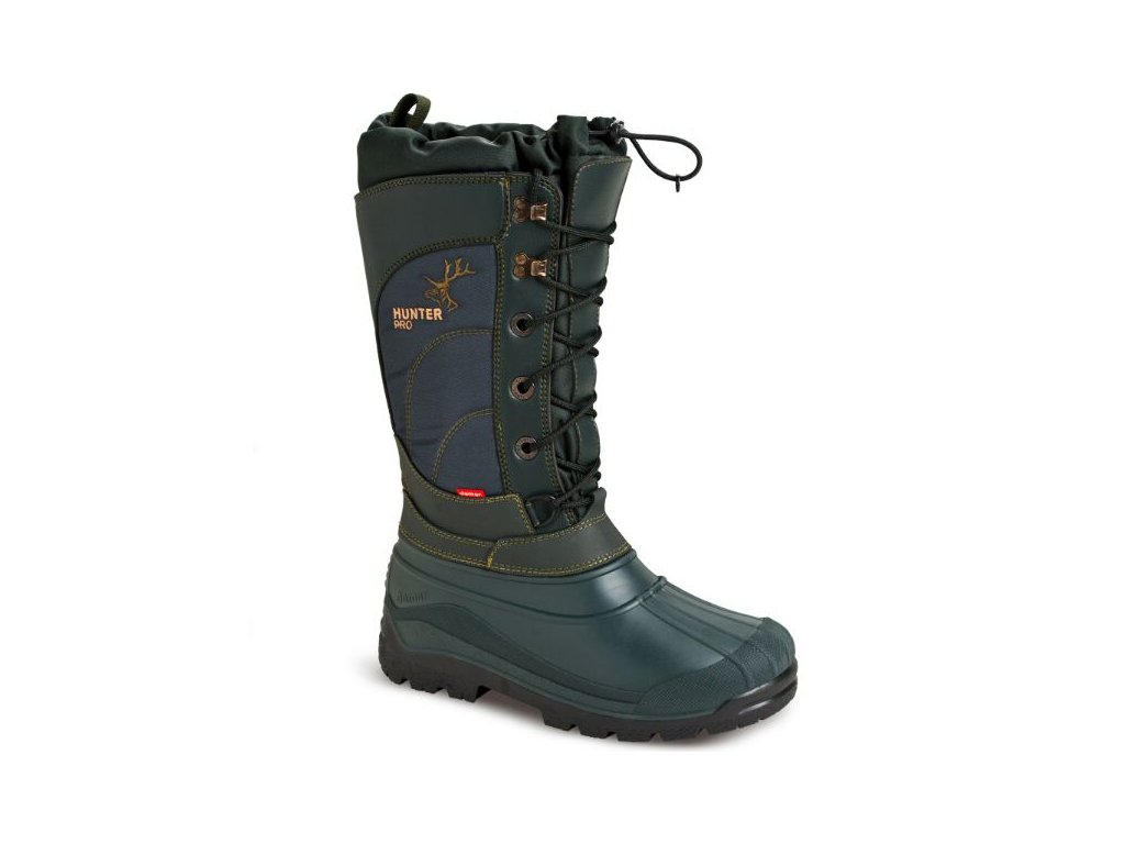 Nepromokavá spodní část je vyrobena z termokaučuku, vrchní díl z mrazuvzdorného nylonu. Možnost zatažení vršku obuvi proti padání sněhu, na tkaničku. Obuvi Hunter PRO nechybí poutko pro snadné nazouvání. Vyjímatelné zateplení z pravé ovčí vlny.