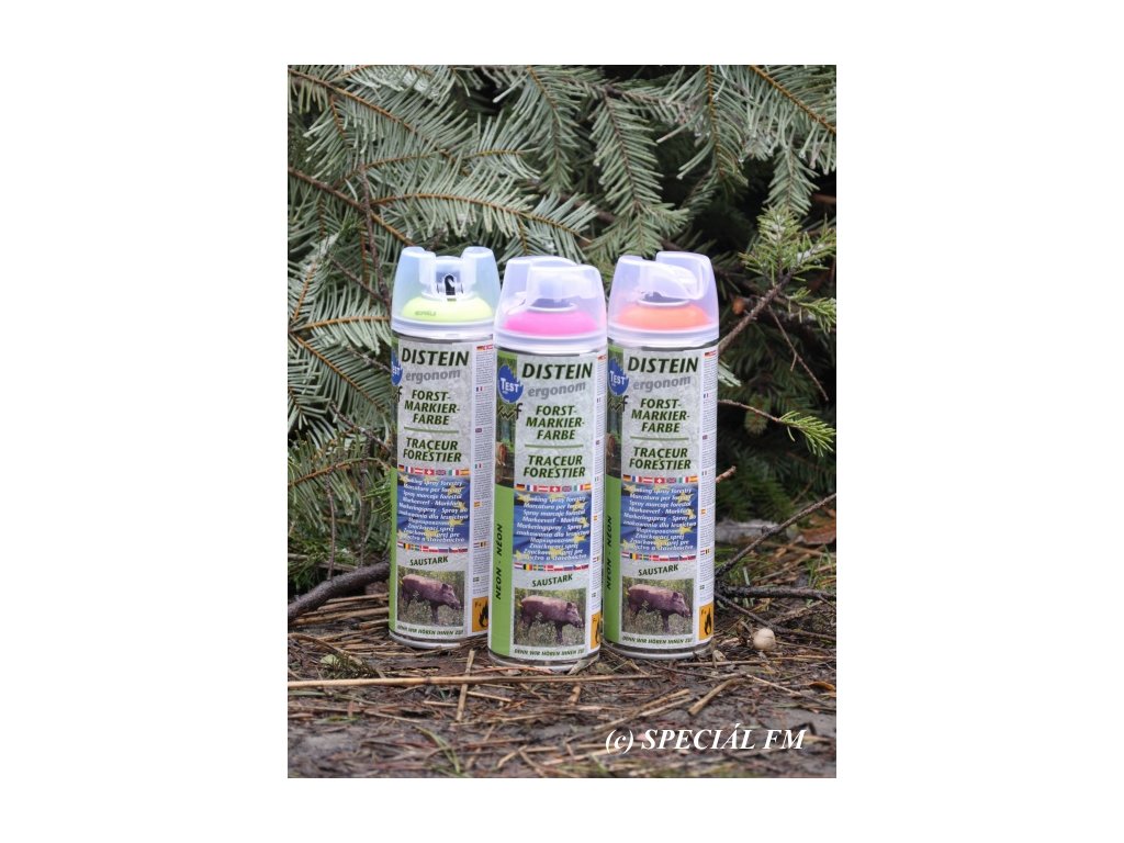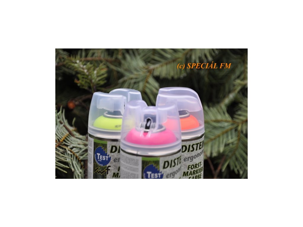 Značkovací reflexní barva ve spreji pro střednědobé použití v lesním hospodářství a stavebnictví.